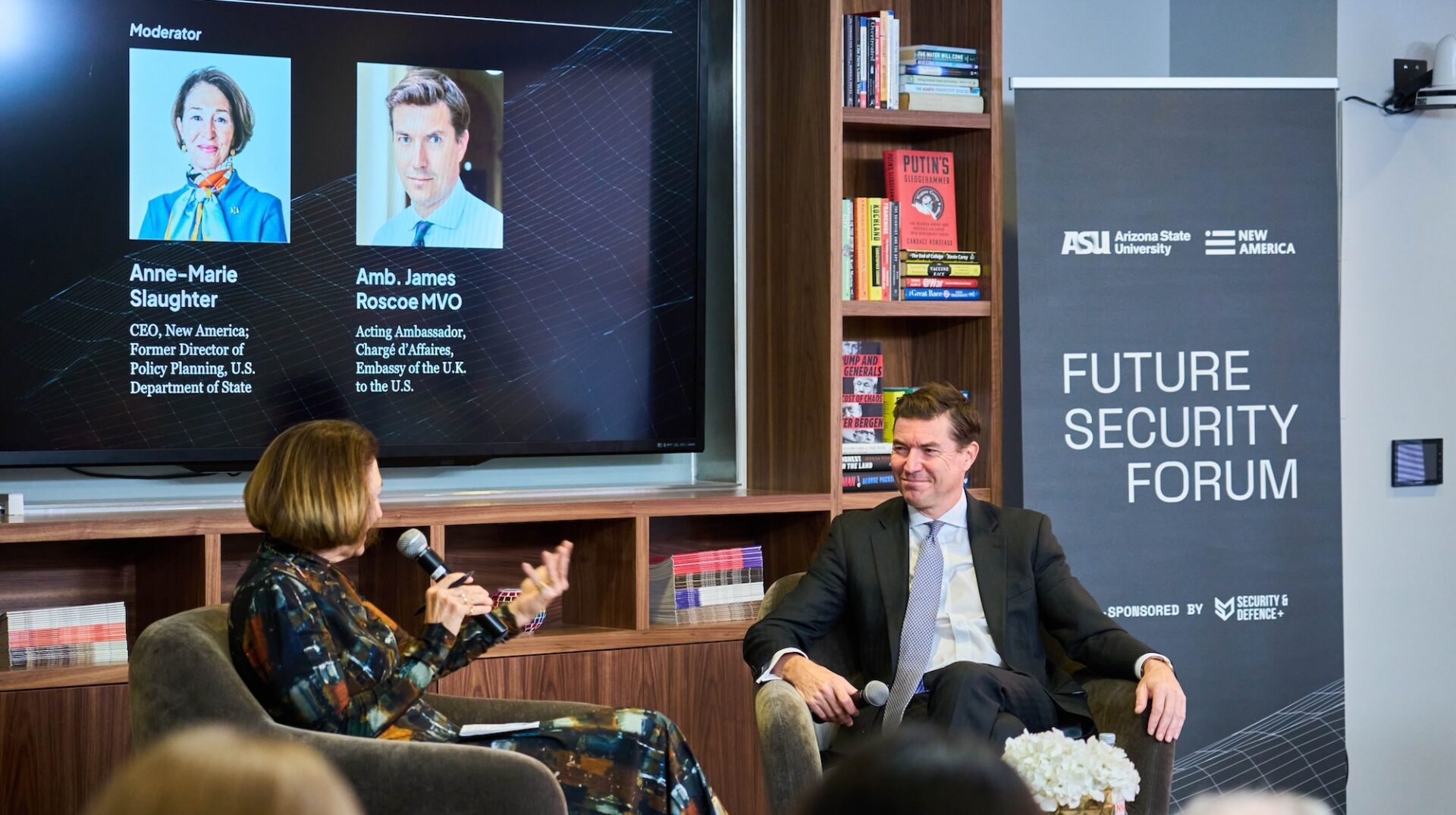 In the first session of the Forum, Ambassador James Rosco MVO, Acting Ambassador and Chargé d’Affaires at the Embassy of the UK to the US, joined Anne-Marie Slaughter to discuss Britain’s evolving role in global security after Brexit.